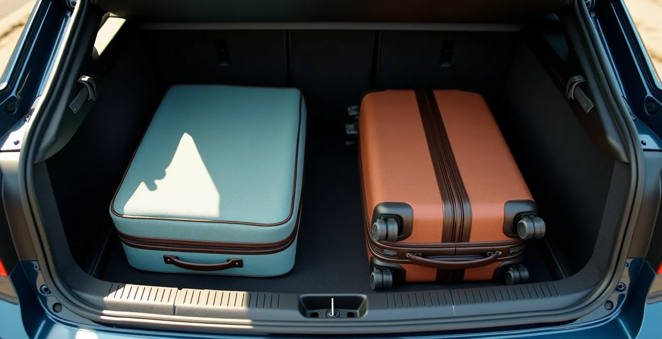 La superiorità della valigia morbida in un contesto on the road non è un’opinione, ma una questione di geometria e fisica. Mentre una valigia rigida è un solido con un volume fisso e incomprimibile, un bagaglio morbido è un contenitore flessibile il cui volume si adatta agli spazi vuoti. Questo si traduce in una maggiore efficienza volumetrica. Un bagagliaio non è uno spazio cubico perfetto; è pieno di angoli irregolari, curve dovute ai passaruota e anfratti. Una valigia morbida può essere compressa e modellata per occupare questi spazi “morti” che un guscio rigido lascerebbe inevitabilmente vuoti.
